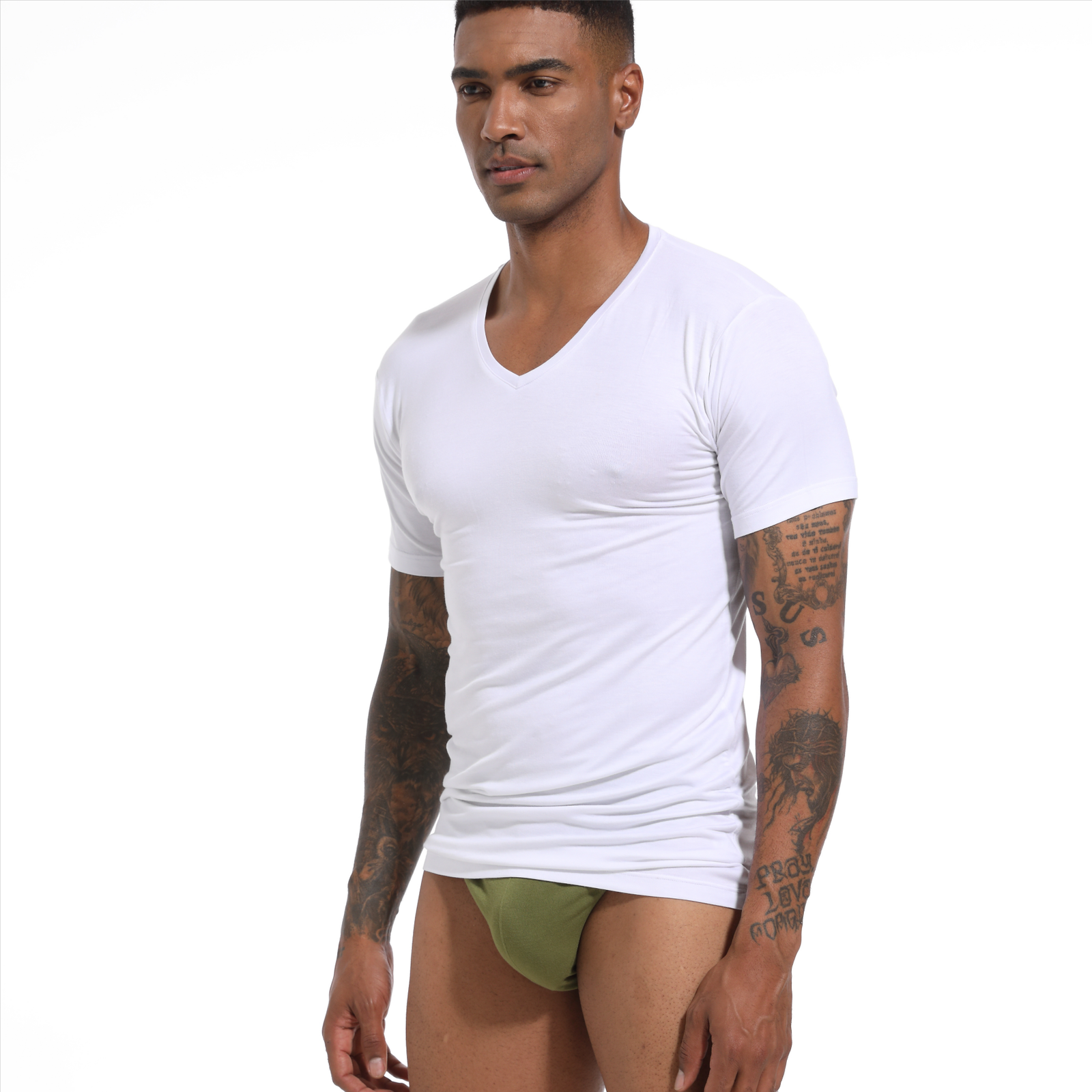 - V- neck and short-sleeved undershirt